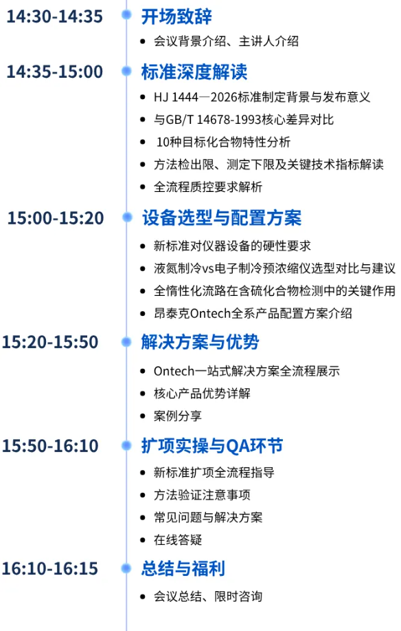 本次会议主题为“新标启航・精准溯源 ——HJ 1444—2026标准解读及线上交流会”,报名方式、参会流程及其他相关事宜如下,诚邀各位业内同仁积极预约、踊跃参会!